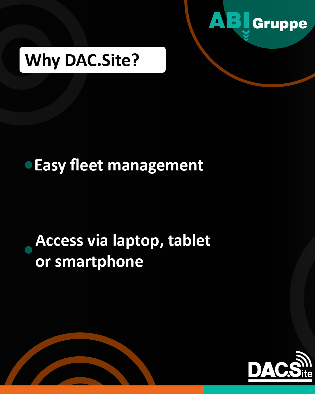 ABI Group has officially launched DAC.Site – “Data Analytics on Construction Site”.  This powerful new platform has been designed to give customers complete visibility of their machine fleet anytime, anywhere.  The platform uses the Internet of Things (IoT) a network of physical "things"—such as smart phones, tablets, vehicles, or machinery—embedded with sensors, software, and connectivity to exchange data over the internet. These smart devices communicate autonomously, enabling remote monitoring, control, and automation of daily tasks or industrial processes.   Built to meet the growing demand for digital transparency on construction sites, DAC.Site brings together real-time machine data, intuitive dashboards, and advanced documentation tools in one browser-based portal.  As our new product update explains, “machine and process data are recorded in real time, in a structured manner and displayed in clearly designed, predefined dashboards.”